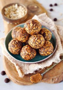 Energy bites made with oats, flaxseeds, nuts, and a natural sweetener like honey are a great on-the-go high-fiber snack. Oats contain beta-glucan, a fiber type that lowers cholesterol and reduces inflammation.