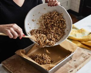 Spread the oats and nuts on a baking sheet and toast them in a preheated oven at 350°F (175°C) for about 8–10 minutes. This step enhances the flavor and gives your bars a rich, nutty taste.